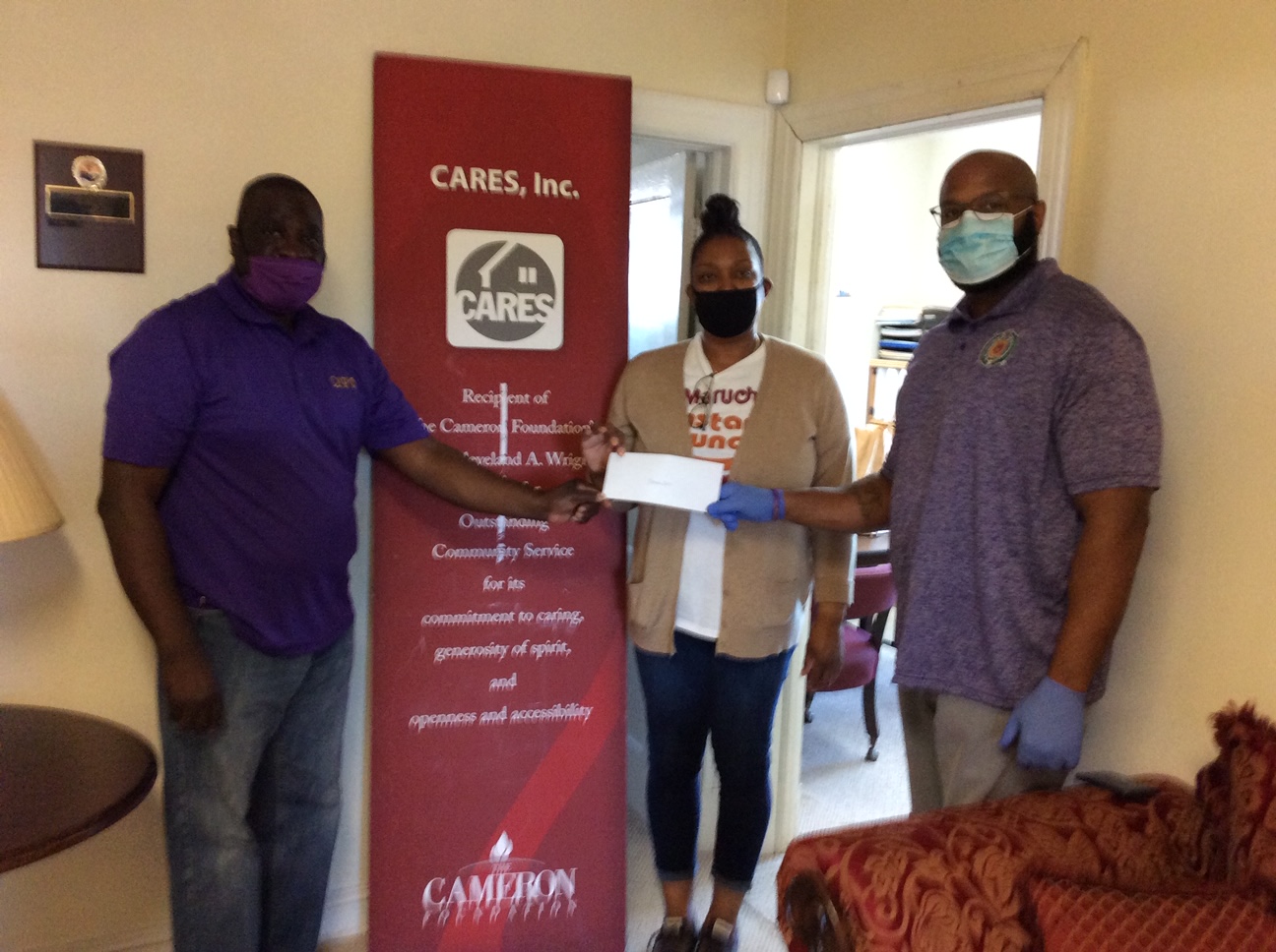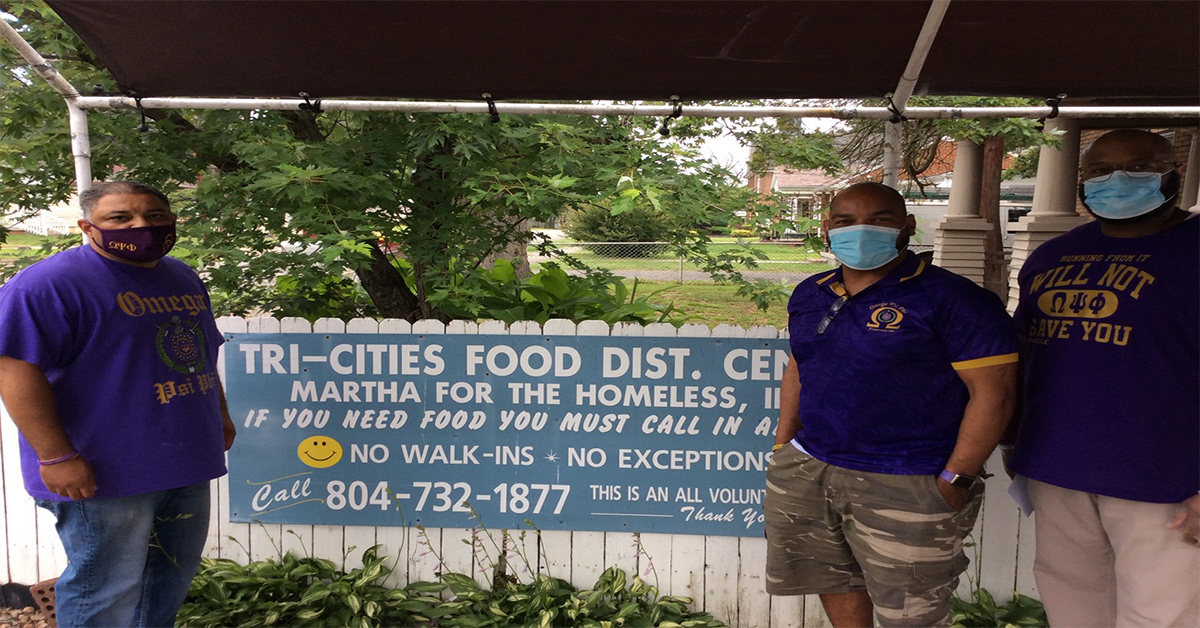 July 2020. The Delta Omega Chapter Covid-19 Mitigation Team made two donations of $150 each to two separate organizations, Martha’s for The Homeless Inc., and Cares Inc., Petersburg in order to assist them with ongoing services to the local community. The Brothers that were involved were Brothers Marlon Penn, Michael Allen, Delta Omega Vice Basileus, Jack Robinson, and Henry Davis.