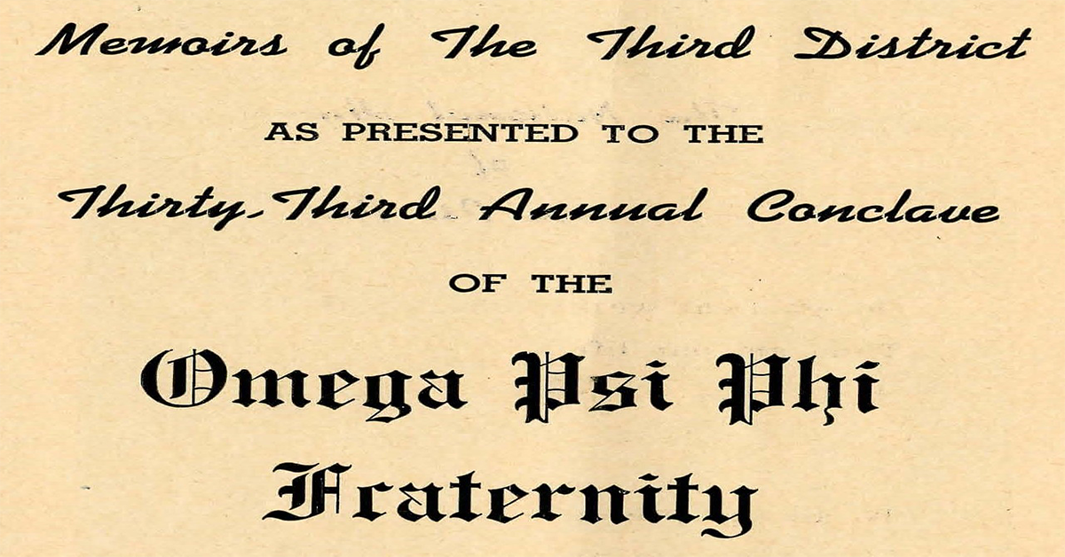 Greetings Brothers, Peace and blessings to you and your loved ones during this holiday season. Prior to 1955, in addition to preparing for the Christmas holiday, brothers were preparing to attend the Grand Conclave after Christmas and before the New Year. It wasn't until the 42nd Grand Conclave held in Los Angeles, California in 1955 that the Fraternity began holding the Grand Conclave in the summer - August to be exact. Accordingly, the 33rd Grand Conclave was held in Fort Worth, Texas from December 27-30, 1946. During this Grand Conclave, the 18th Grand Basileus, and first from the Third District after the organization of districts, Campbell C. Johnson, presented the "Memoirs of the Third District." (Click here to download Memoirs). It seems he was proud of the district he called home. The Memoirs provide a measure of just how MIGHTY the Third District has been over the years. Thanks to Brother Jonathan "Flash" Matthews for sharing these Memoirs with us. F.I.E.T.T.S. 3rd District History and Archives Committee