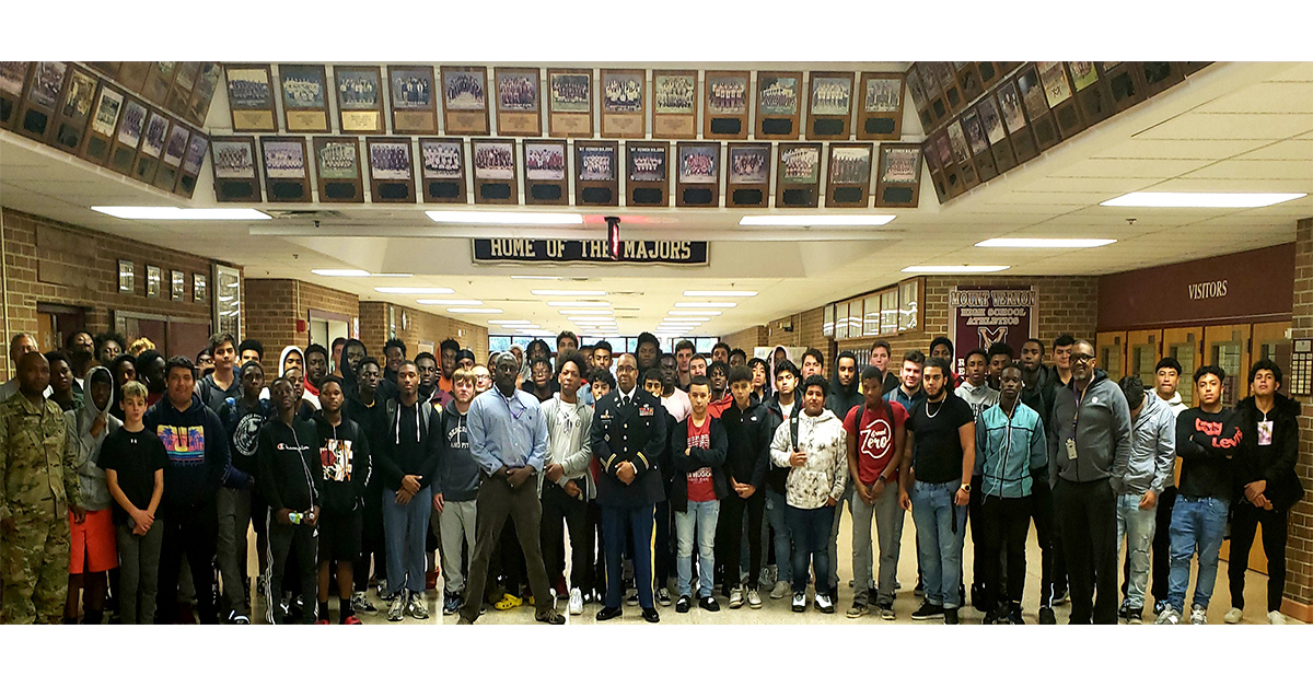 Bro. MAJ Ahmad Andrews spoke to the Mount Vernon High School football team in Fairfax County on October 30, 2019.