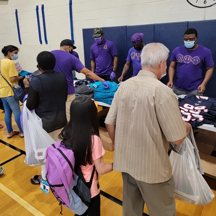 Alexandria, VA – The Brothers of the Psi Nu Chapter, Third District, of the Omega Psi Phi Fraternity, Inc. supported more than 200 families during an annual back-to-school supply giveaway, hosted by the Alexandria Redevelopment Housing Association. On Sunday, August 22, 2021, nine brothers attended the event that offered over $10,000 worth of free haircuts and hairstyles, backpacks, school supplies, and clothes for all ages. With the poverty rate of Alexandria, VA being over ten percent, the drive helped to ease the back-to-school burden for needy families. Other volunteers included: Alexandria Toyota Dealership, Chadwick’s Restaurant and Departmental Progressive Club.