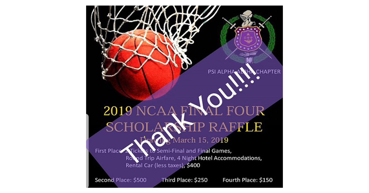 Tickets for the NCAA Final Four Raffle went on sale in October 2018 with the last ticket sold just minutes prior to the drawing. The money raised from ticket sales routinely exceeds $20,000 with 2019 following form. Proceeds from the raffle are awarded as scholarships for college-bound high school seniors and provide financial support for activities designed to improve the community.