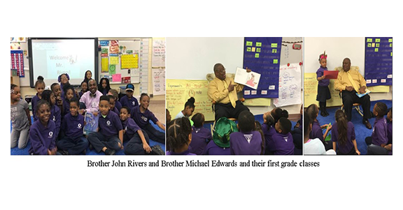 Brother John Rivers, also read to a first-grade class as well. His assigned book was “Rainbow Fish”. He also thought the experience was amazing. When he finished, he had the class discuss lessons learned from the book. he read. Though the books we read were not that long, we found ourselves engaged with our classes for over an hour. The teachers were very gracious and let us continue to interact with the kids. Each student was encouraged to speak about the books and were very enthusiastic.
